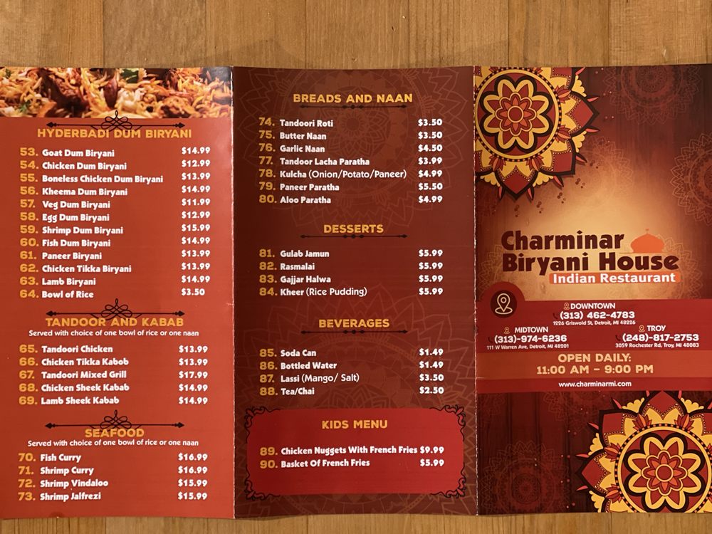 Located at 1226 Griswold St, Charminar Biryani House is not just about food; it's about an experience that transports you to the streets of Hyderabad with every bite. Don’t miss out on this flavorful journey!